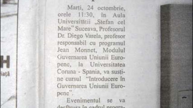 En octubre de 2006 Diego Varela visitó la Universidad "Stefan cel Mare" de Suceava, en cuya aula magna impartió una conferencia titulada "Introducere in Guvernarea Uniunii Europene", que versó sobre qué es la Unión Europea y cómo podemos estudiarla.