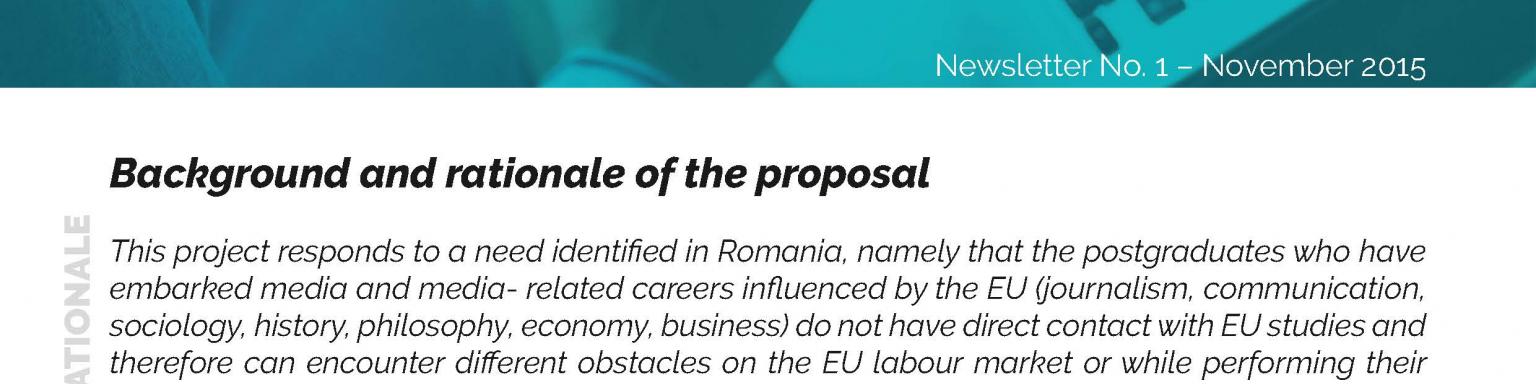 This project responds to a need identified in Romania, namely that the postgraduates who have embarked media and media- related careers influenced by the EU (journalism, communication, sociology, history, philosophy, economy, business) do not have direct contact with EU studies and therefore can encounter different obstacles on the EU labour market or while performing their day to day professional activities.